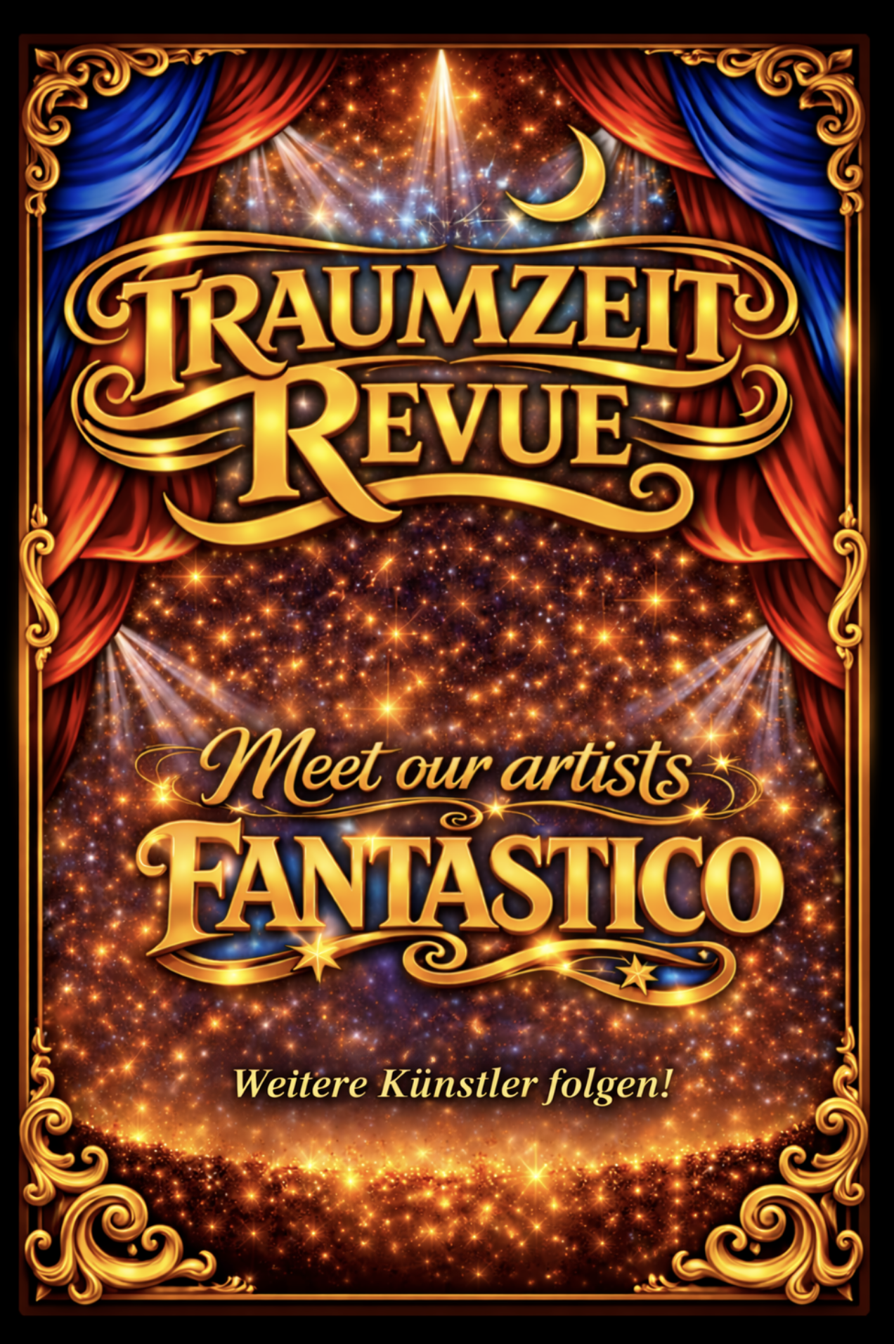 Die "Traumzeit"-Revue kehrt zurück – glamourös, stilvoll und mit international gefeierten Künstlerinnen und Künstlern, die auf Europas grossen Bühnen zu Hause sind. Ein magisches Dinner-Theater-Erlebnis, das Kulinarik, Lichtkunst und Live-Performance zu einem immersiven Abend vereint. Musik, Live-Gesang, Travestie und Schauspiel verschmelzen mit einem exquisiten 3-Gänge-Menü zu einer poetischen Inszenierung, in der Fantasie und Realität ineinanderfliessen. Das rund drei- bis dreieinhalbstündige Erlebnis umfasst Empfang, Dinner und Show - und verspricht einen atmosphärischen Abend voller Emotionen und überraschender Momente. Ein exklusives Showprojekt der Extraklasse.Premiere ist im Herbst 2026/2027 geplant. Der offizielle Vorverkauf startet im Juli 2026.